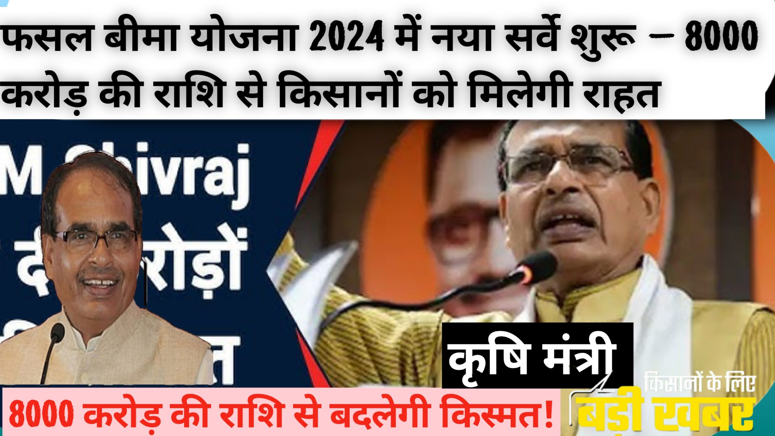 प्रधानमंत्री फसल बीमा योजना 2024 के तहत 8000 करोड़ रुपए जारी। कृषि मंत्री शिवराज सिंह चौहान ने कहा—जिन किसानों को राशि नहीं मिली, उनके लिए दोबारा होगा सर्वे।