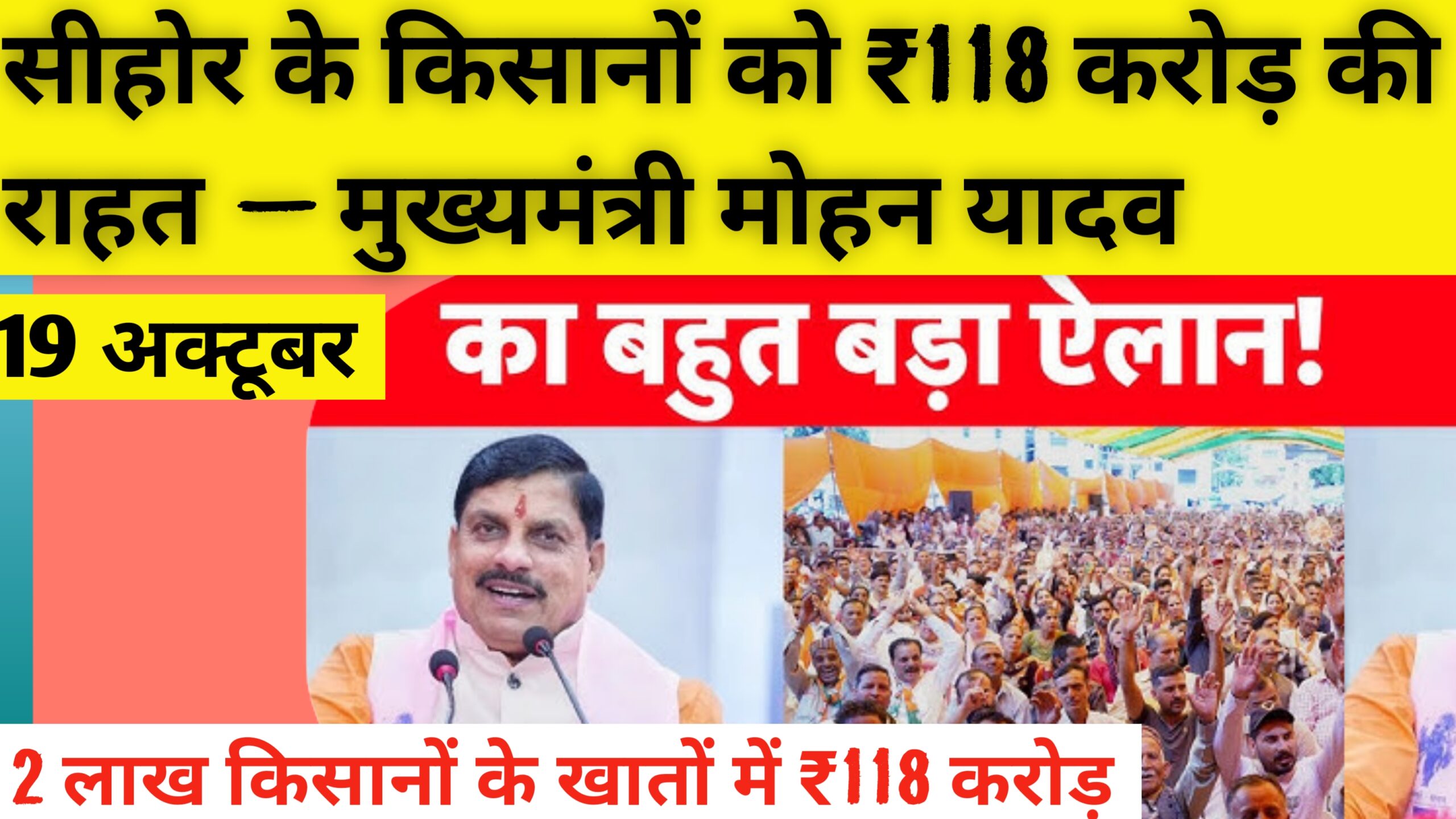मध्य प्रदेश के उज्जैन जिले में मुख्यमंत्री मोहन यादव आज 21 अक्टूबर 2025 को सोयाबीन किसानों के लिए बड़ी राहत की घोषणा करने वाले हैं। जानिए किन जिलों के किसानों को दीपावली से पहले मुआवजा और राहत राशि मिलेगी।