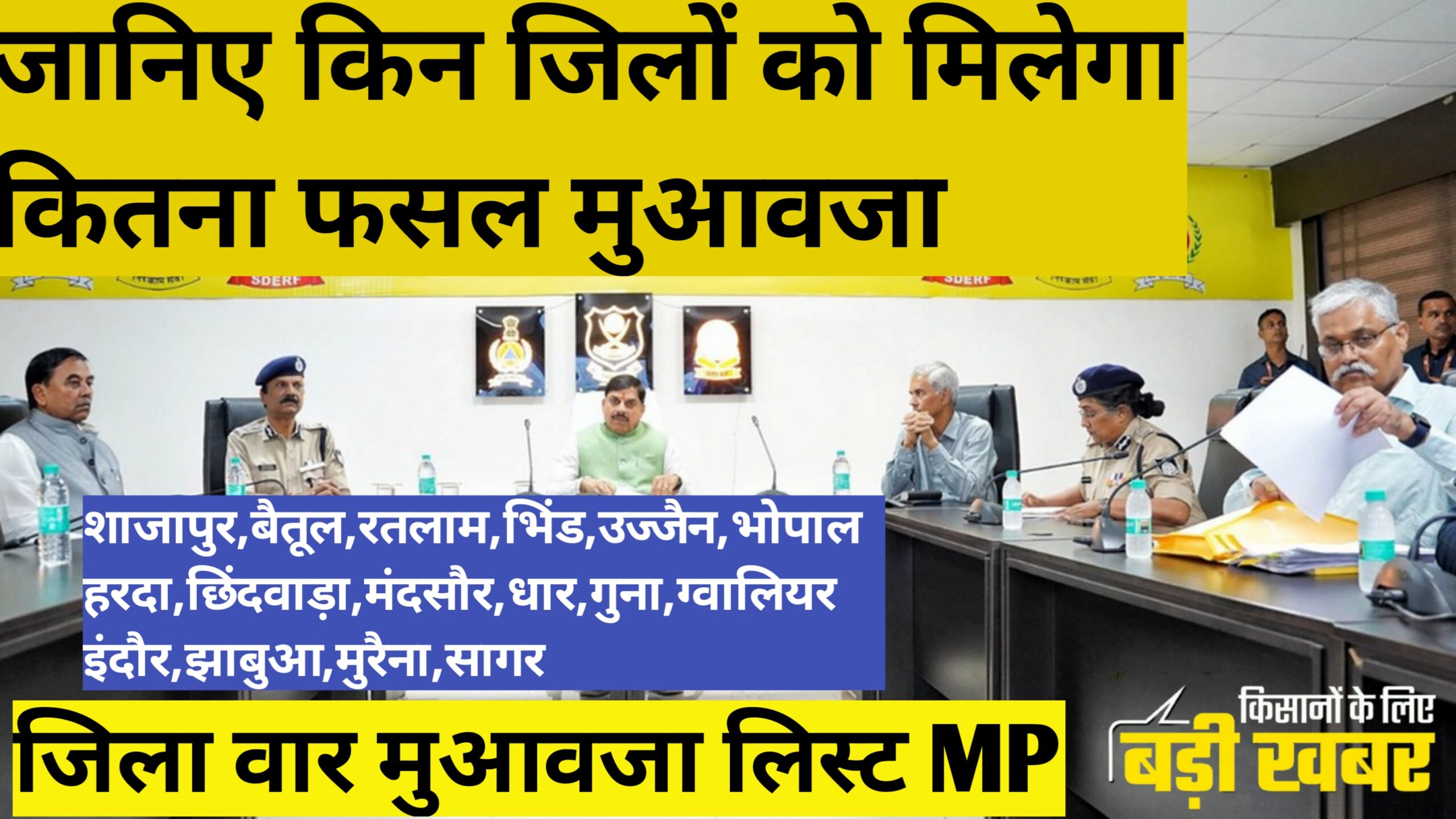 राज्य सरकार की सूची के अनुसार, लगभग 26 से 30 जिलों के किसानों को मुआवजा राशि दी जाएगी। कुछ प्रमुख जिलों और उनकी निर्धारित राशि इस प्रकार है: