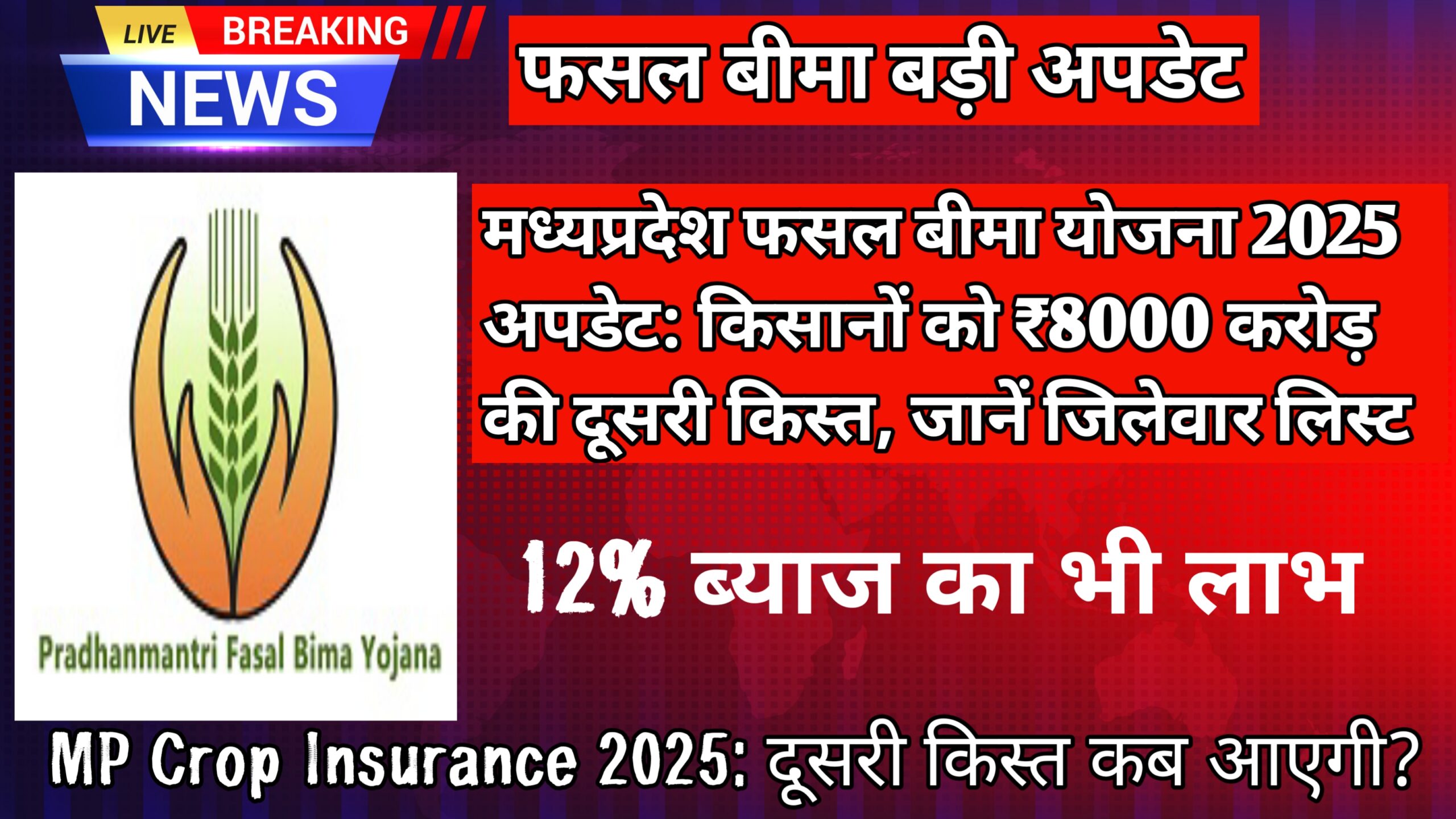 सरकार ने स्पष्ट किया है कि राशि लेट होने पर किसानों को 12% ब्याज भी दिया जाएगा। वहीं, पीएम किसान सम्मान निधि से जुड़ा बड़ा अपडेट यह है कि बकाया किस्तें एक साथ अक्टूबर में जारी होंगी। किसानों को 12% ब्याज फसल बीमा, District-wise list MP Fasal Bima